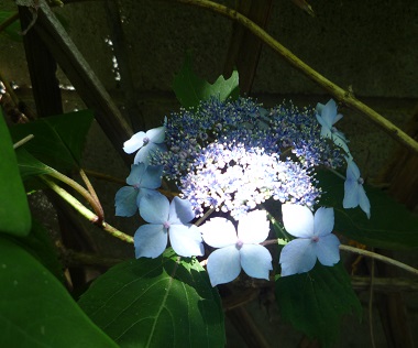 極小庭で最初に色ずくアジサイ
