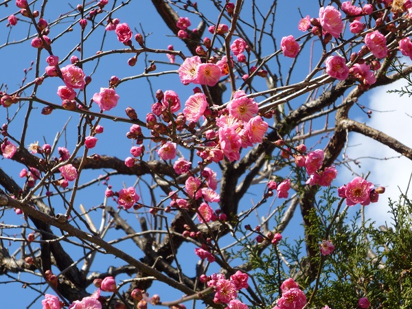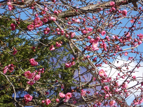 今朝の紅梅です 綺麗な色でしょう ホント・不思議な冬です