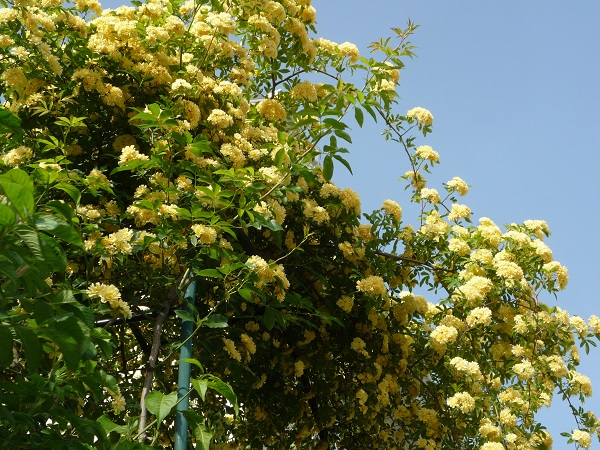 青空に映えるモッコウバラ