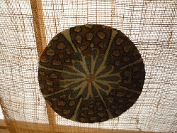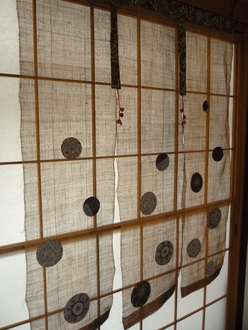 茶色の蚊帳に型染
