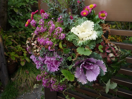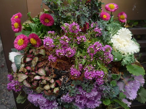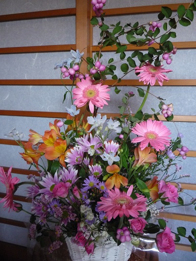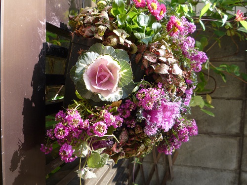 アレンジメント、ハンギング、ピンク系でまとめて、気持ちも明るくなりますね。作者の性格が出てますね。今日のように雨で鬱陶しい時は、庭に一際咲き誇るハンギングが心を癒してくれますね。私も真似して作って見よう~~~(*^-^*)