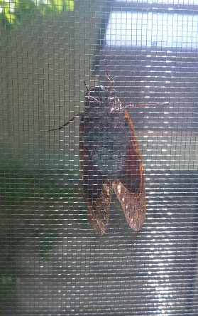 やっと網戸にしがみついているせみ