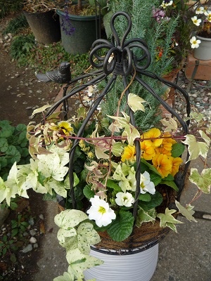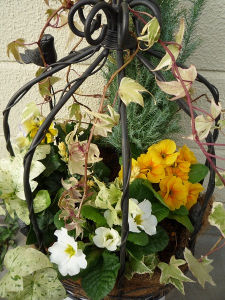 鳥かごの寄せ植えです