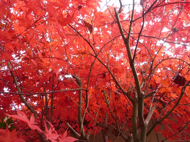 庭のモミジが一番の色を見せてます